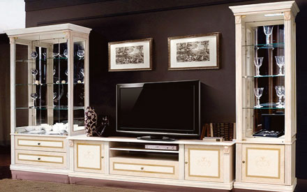 Витрина 1-но створчатая К3В1-1С левая или правая (1 шт.) Витрина 2-х створчатая К3В1-2С (1 шт.) Тумба под ТВ 1.2 м К3ТТ-1 или Тумба под ТВ 2.0 м К3ТТ-2(1 шт.)